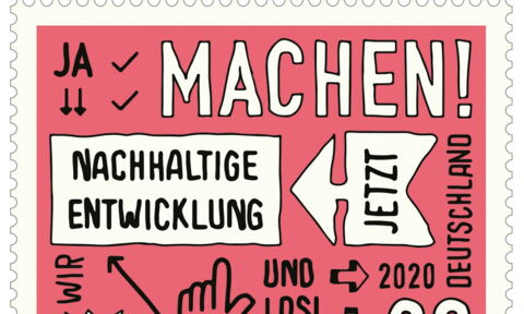 Das Bundesministerium der Finanzen hat im Februar 2020 ein Sonderpostwertzeichen „Nachhaltige Entwicklung“ herausgegeben. Die Briefmarke fordert uns alle auf, einen Beitrag für Nachhaltigkeit zu leisten.