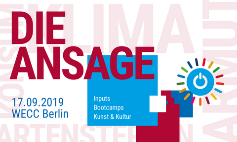 Eine Woche vor dem SDG-Gipfel in New York findet am 17. September 2019 in Berlin die Veranstaltung DIE ANSAGE von RNE und RENN-Leitstelle statt. Sie richtet sich an alle, die angesichts von Ozeanplastik, Klimapanik, Lücken im Miteinander und Sackgassen des Egoismus nicht nur reden, sondern handeln (wollen) - und das weltweit.