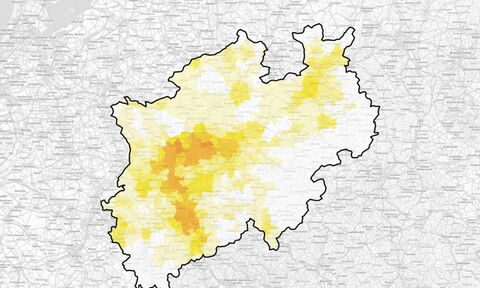 Im Rahmen eines Projekts der Ruhr-Uni Bochum wurde eine hochdetaillierte Bodenversiegelungskarte für NRW erstellt, die im Klimaatlas NRW frei zugänglich ist. Hintergründe hier.