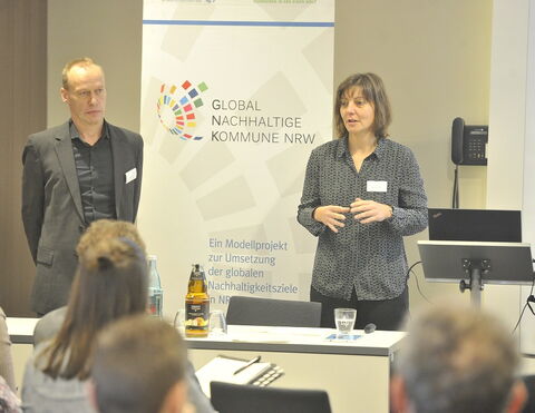 Den Startschuss zur Tagung gaben Dr. Klaus Reuter, Geschäftsführer der LAG 21 NRW, und Annette Turmann von der SKEW. Anschließend berichteten Katja Telthörster und Rainer Kasch von der Stadt Osnabrück über die Strategieentwicklung und -umsetzung des Nachhaltigkeitsprojekts ihrer Kommune. Osnabrück wurde im Herbst für eine strategische, wirkungsorientierte und partizipative Handlungsweise als „Deutschlands nachhaltigste Großstadt 2020“ mit dem Deutschen Nachhaltigkeitspreis ausgezeichnet.