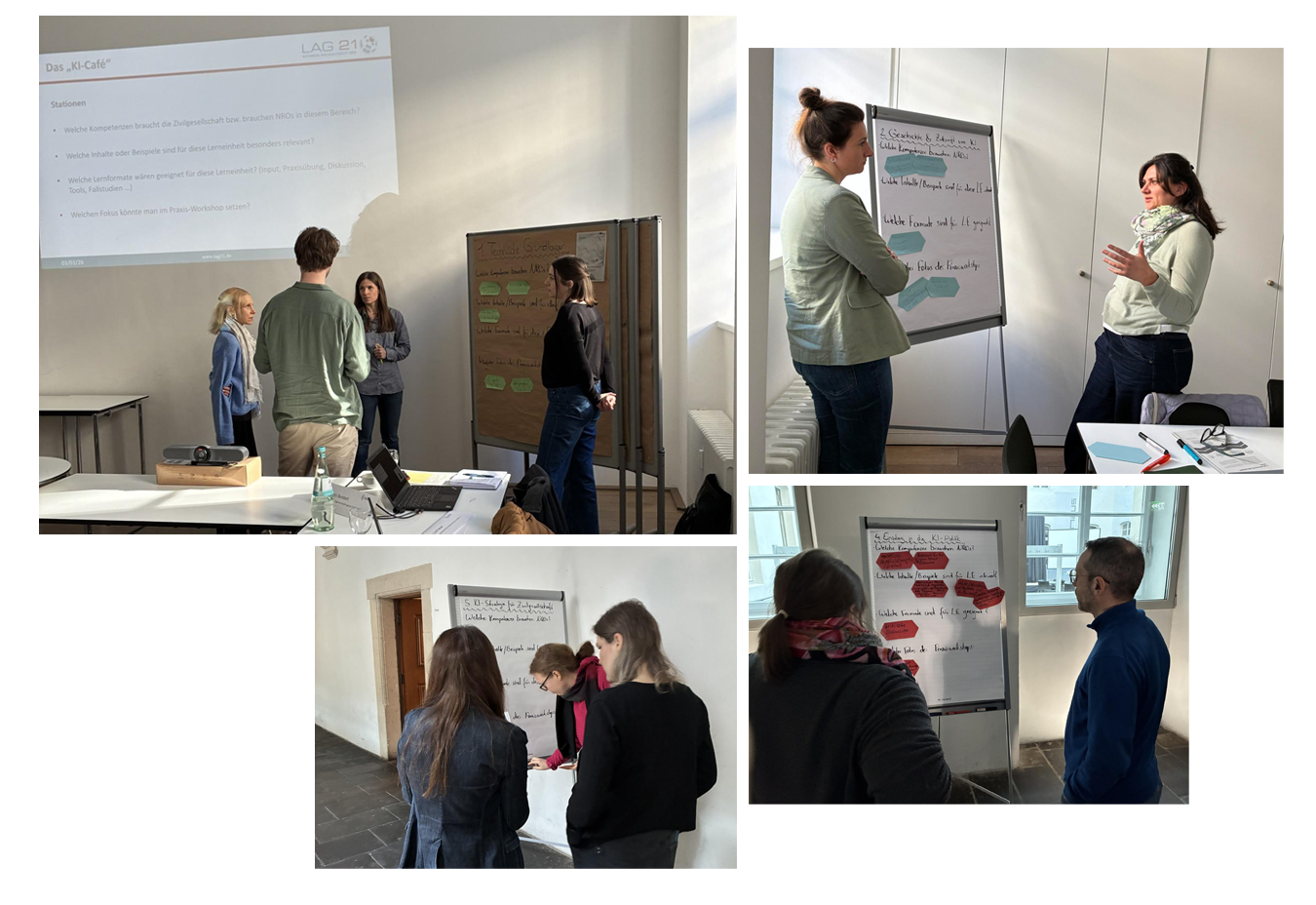Nach der ersten Sitzung, in der die beteiligten Organisationen eine gemeinsame Wissensgrundlage schufen, standen nun konkrete Schritte auf der Agenda: Diskutiert wurde über die Ausarbeitung eines Qualifizierungsprogramms für zivilgesellschaftliche Organisationen sowie über Richtlinien, die sich Organisationen setzen können, um die interne KI-Nutzung geregelt und gemeinwohlorientiert zu gestalten.