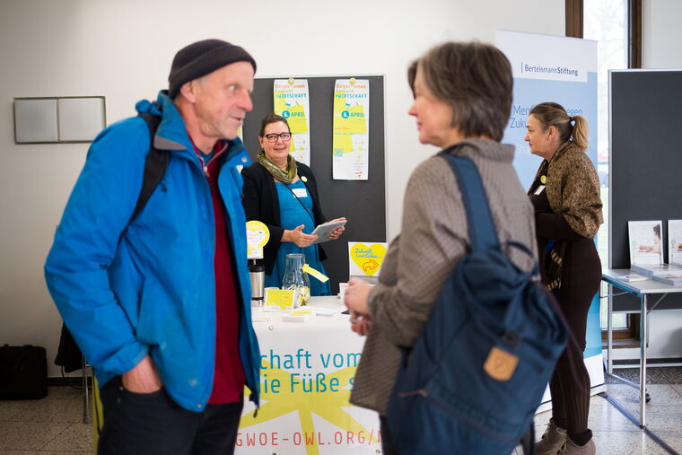 Zeit zum Austausch bot außerdem der „Markt der Möglichkeiten“, bei dem sich sechs unterschiedliche Organisationen und Initiativen präsentierten. Darunter zum Beispiel die Stiftung Umwelt und Entwicklung NRW, die Bertelsmann-Stiftung und die Regionalen Netzstellen Nachhaltigkeitsstrategien West (RENN.west).