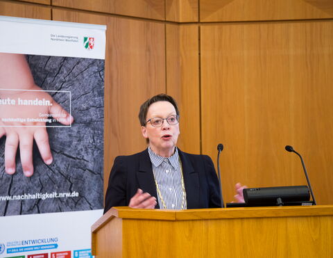 Begrüßt wurden die engagierten Akteure aus Ostwestfalen-Lippe von Regierungspräsidentin Marianne Thomann-Stahl, die einige positive Beispiele für Nachhaltige Entwicklung in der der Region vorstellte. Die Hausherrin zeigte sich überzeugt: „Nachhaltigkeitsziele können nur erreicht werden mithilfe von den Menschen in den Regionen, die diese Ziele in ganz konkreten Projekten umsetzen.“