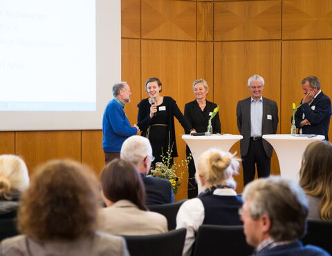 Teilnehmende durften sich direkt auf dem Podium einbringen und aktiv mitdiskutieren. Das Thema lautete „Chancen und Herausforderungen einer Nachhaltigen Entwicklung im Regierungsbezirk Detmold“, moderiert von Mona Rybicki von der LAG 21 NRW.
