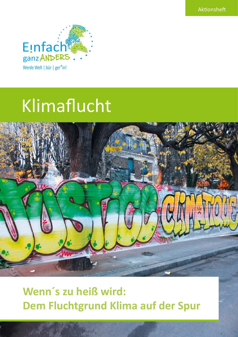 Aktionsheft „Klimaflucht – Wenn’s zu heiß wird: Dem Fluchtgrund Klima auf der Spur“