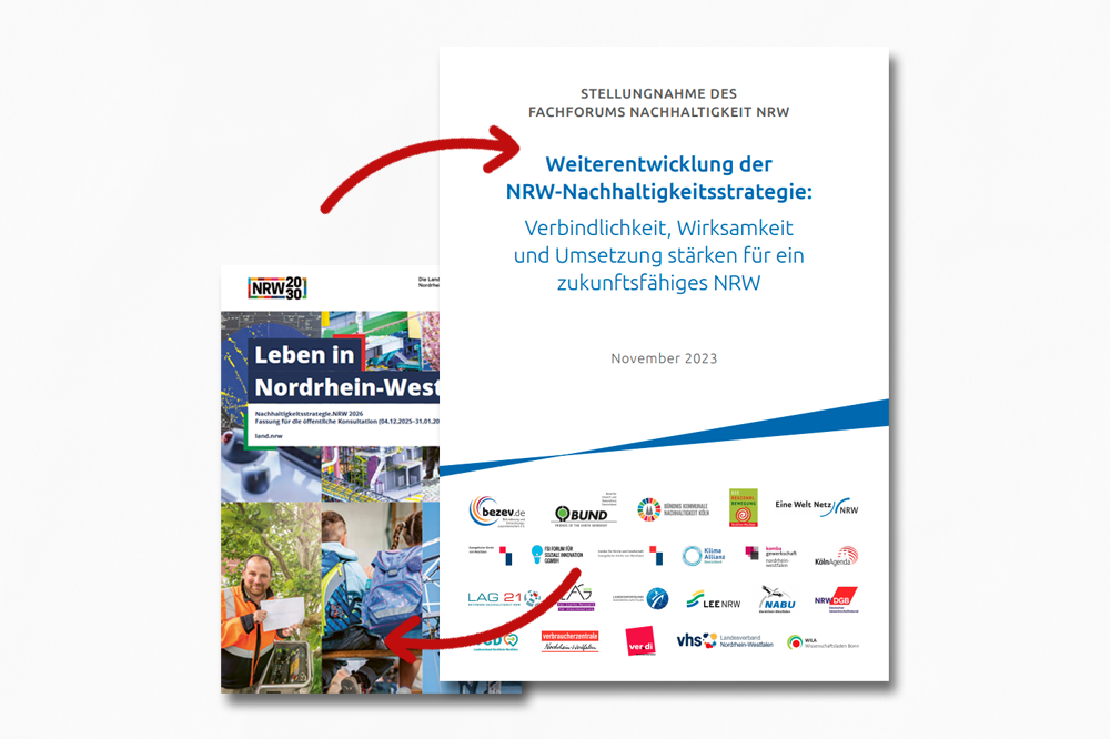 Das Fachforum Nachhaltigkeit NRW, in dem seit 2011 mehr als 30 zivilgesellschaftliche Organisationen unter Koordination der LAG 21 NRW agieren, hatte sich ebenfalls im November 2023 mit der Stellungnahme „Weiterentwicklung der NRW-Nachhaltigkeitsstrategie: Verbindlichkeit, Wirksamkeit und Umsetzung stärken für ein zukunftsfähiges NRW“ in den Prozess eingebracht.