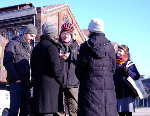 Gemeinsam besuchte die Gruppe Orte des Strukturwandels in der ehemaligen Kohle- und Stahlstadt Dortmund: die ehemalige Hochofenanlage Phoenix-West, wo heute ein vielseitg genutzter Gewerbepark entsteht, und den Phoenix-See, der auf dem Gelände des abgebauten Stahlwerks als Naherholungs- und Immobilienprojekt entwickelt wurde. Mit Oberbürgermeister Sierau diskutierten die Besucher*innen über Transformationsprozesse und den Mut, den es braucht, um diese anzustoßen.