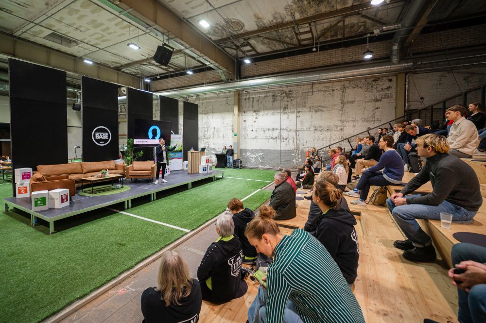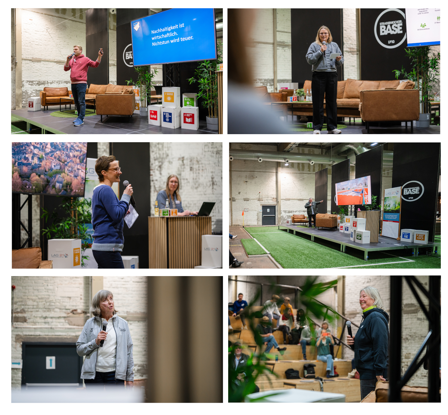 Im nächsten Programmpunkt stellten sechs Vereine verschiedener Größen ihre Aktivitäten und Praxisbeispiele für Nachhaltige Entwicklung vor. Für diese wurden sie im WestDerby Zukunft nominiert, der Auszeichnung für nachhaltige Sportvereine von RENN.west. Auf der Bühne inspirierten die Vereinsvertreter*innen nicht nur durch das Aufzeigen konkreter Handlungsmöglichkeiten im Verein, sondern auch durch ihre Leidenschaft, etwas zum positiven Wandel beizutragen. (Infos, welche Vereine dabei waren und wer später am Abend die Siegestrophäen mit vom Platz nahm - weiter unten.)