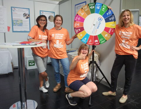Sie konnten ihre Traumstadt mit dem Stadtbaukasten bauen, beim Nachhaltigkeits-Quiz mitmachen oder nachhaltige Giveaways gewinnen - es gab Gemüsebeutel, Fahrrad-Flicksets und vieles mehr. Vor allem sind wir mit vielen unterschiedlichen Menschen ins Gespräch gekommen. Wir haben ihnen unsere Projekte vorgestellt und sie zur Vernetzung eingeladen.