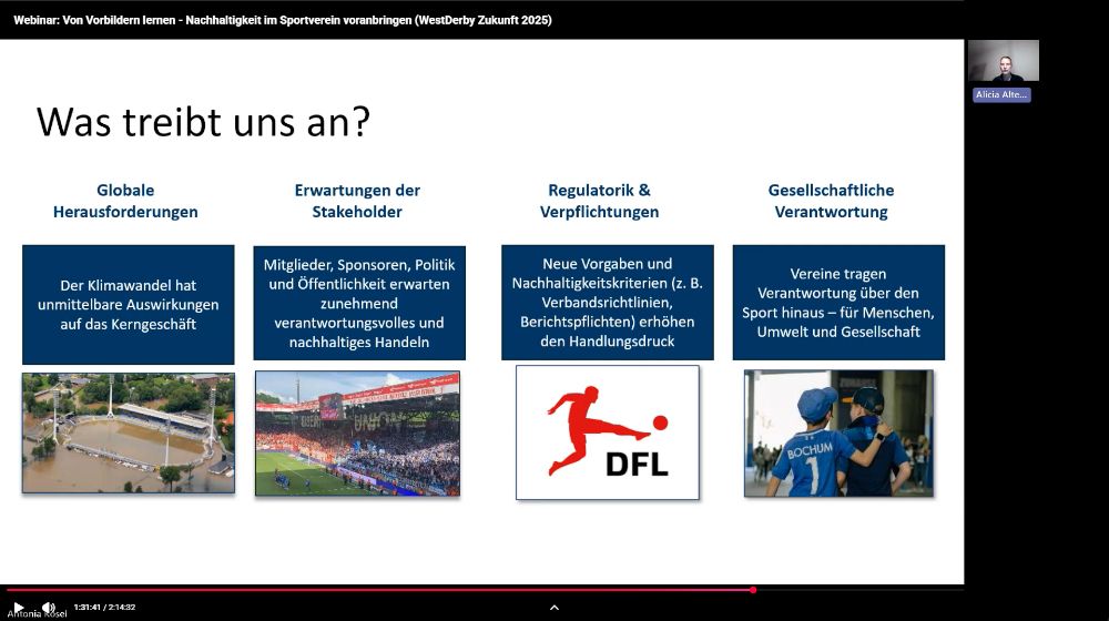 Wer unser Webinar rund um Nachhaltigkeit im Sport und mit den Gewinner-Vereinen des WestDerby Zukunft 2025 verpasst hat, kann nun in die Aufzeichnung schauen – oder hier Eckpunkte nachlesen.